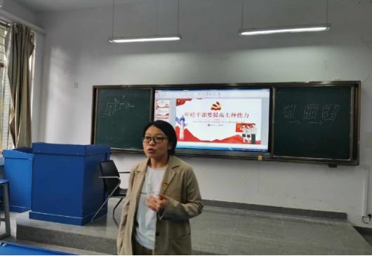 接下来,与会成员学习了习近平在2021中青年干部培训班秋季学期开班仪式上的重要讲话精神。曹老师做了“年轻干部要提高七种能力”的主题党课。曹老师讲到,七种能力分别是政治能力、调查研究能力、科学决策能力、改革攻坚能力、应急处突能力、群众工作能力和抓落实能力。曹老师对这七种能力分别进行了解读。