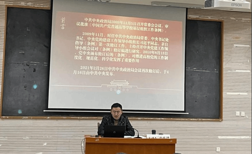 历史与行政公司党委副书记徐振坤解读了《中国共产党普通高等公司基层组织工作条例》(以下简称《条例》)。从四部分向参训党员们讲解了《条例》修订的主要内容,在深化党员队伍建设、规范和严肃党组织生活等方面,具有重要意义。