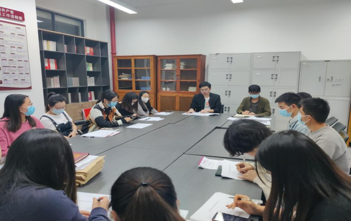 第二项议程是开展2021年度组织生活会和民主评议党员,首先由支部副书记作2021年度支部工作报告,与会党员就报告内容进行讨论,提出意见。李潮充分肯定了支部工作,指出特别是“四史教育”活动的开展受到同志们一致好评。施然、王洁怡指出了支部存在主题党日活动内容单一、活动形式刻板不足。孙南星、董书柳等同志则是从加强与其他支部的交流和学习借鉴等方面对支部的建设献言献策。随后,支部以党小组为单位分组开展谈心谈话、批评与自我批评,各位党员同志从思想、学习、工作、生活等方面做出深刻反思,其他党员也对其提出了批评意见。