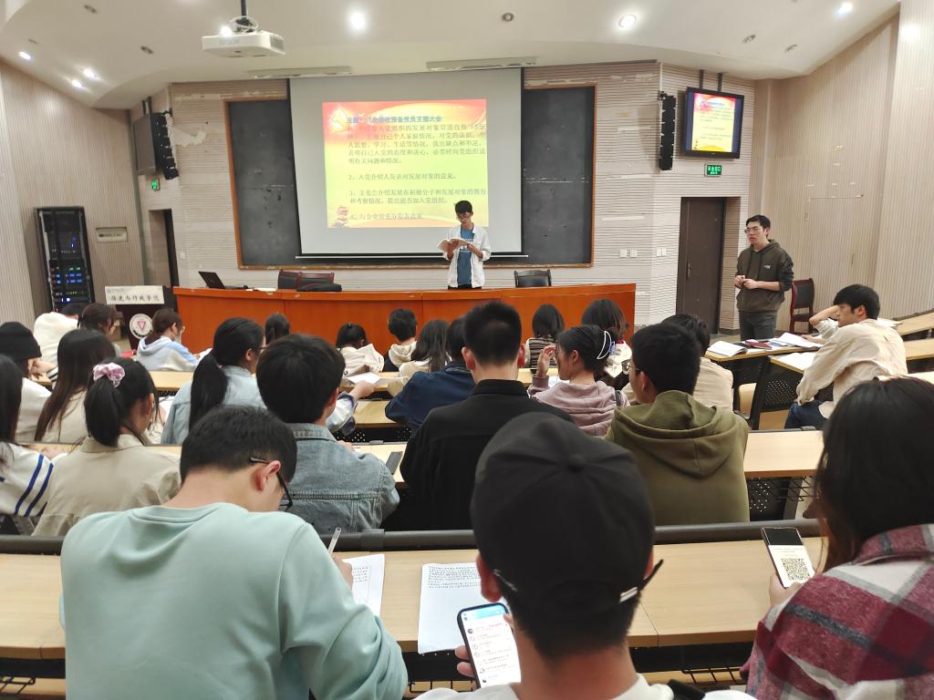 2022年5月12日晚,员工第二党支部在明德3号楼301教室开展了“传承红色基因,堪当民族复兴重任”为主题的党日活动。活动由支部副书记郑军熠主持,支部党员共24人参加。