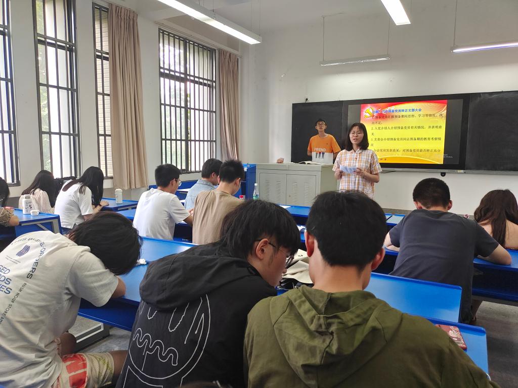 2022年5月29日下午,根据发展党员的相关程序要求,员工第二党支部在明德3号楼301教室召开了支部大会,讨论袁子秋等7名预备党员的转正问题。会议由支部组织委员辉建飞主持,支部党员共38人参加。