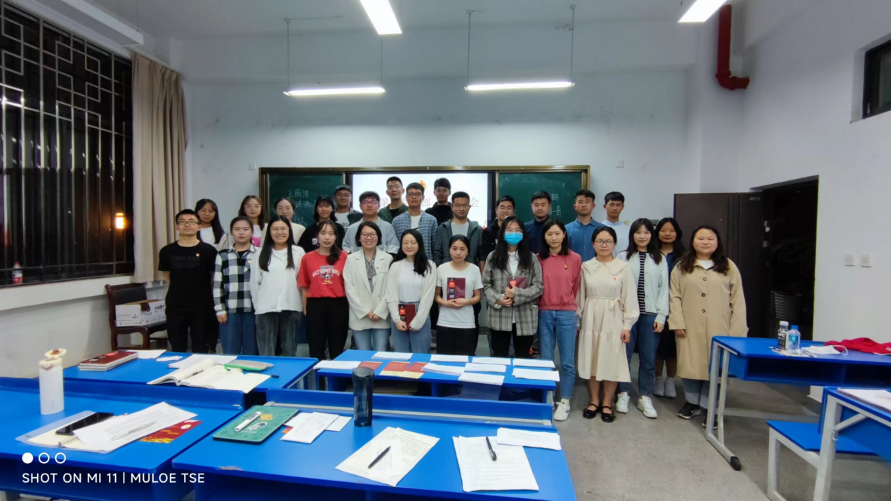 2022年5月28日,支部在明德三号楼303教室召开预备党员转正会议。大会由党支部组织委员彭雷主持,支部全体成员参加。与会党员对孙诺央初等六名同志预备期一年来的表现进行了客观的评价,肯定了他们一年来的工作成绩以及所取得的进步,并对他们今后的工作提出了意见和希望,认为他们已经符合一名正式党员的条件。经与会正式党员表决,孙诺央初等六名预备党员按期转正为中共正式党员。