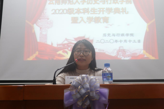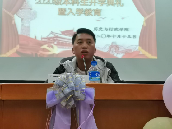 紧接着历史系主任肖雄老师,公共管理系主任王妮丽老师,文物与博物馆系董晓京老师以及公共管理事业向先迪老师,分别对相应的学科专业进行了介绍,从历史沿革一直到前景发展、科研成果和就业前景,他们希望同学们能养成好学、勤学的学习态度,打牢基础,学好专业知识,同学们听了纷纷表示受益匪浅。