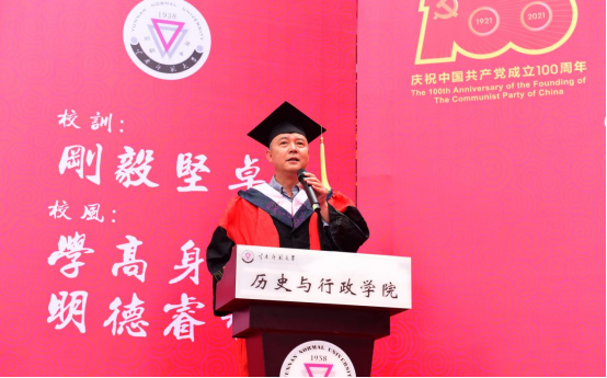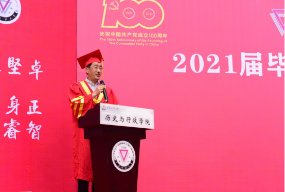 四年师友昨日成追忆,千里之行今朝正起航。2021届毕业生即将离开母校,扬帆起航,毕业典礼既是对过去的总结更是对未来人生的期盼。今年是中国共产党成立一百周年,国家发展也日新月异,希望广大毕业生们志存高远、脚踏实地,不畏艰难险阻,勇担时代使命,把个人的理想追求融入党和国家事业之中,为党、为祖国、为人民多作贡献。