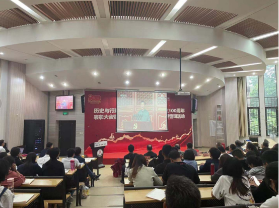 历史与行政公司党委于2021年7月1日上午8时,组织公司共计142名师生党员在明德3-101报告厅集中收听收看党中央庆祝中国共产党成立100周年大会,认真聆听学习习近平总书记在庆祝大会上的重要讲话精神。
