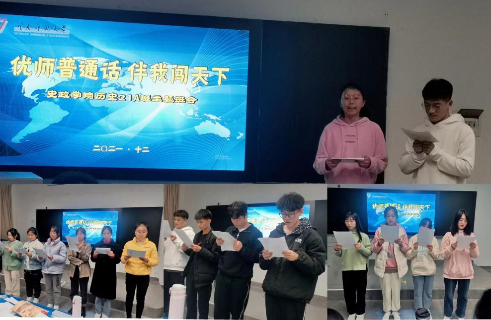 历史21A班全体同学参加了比赛。本次比赛旨在检验大家一学期以来普通话训练的成果,为以后成为优质师范生打下坚实基础。