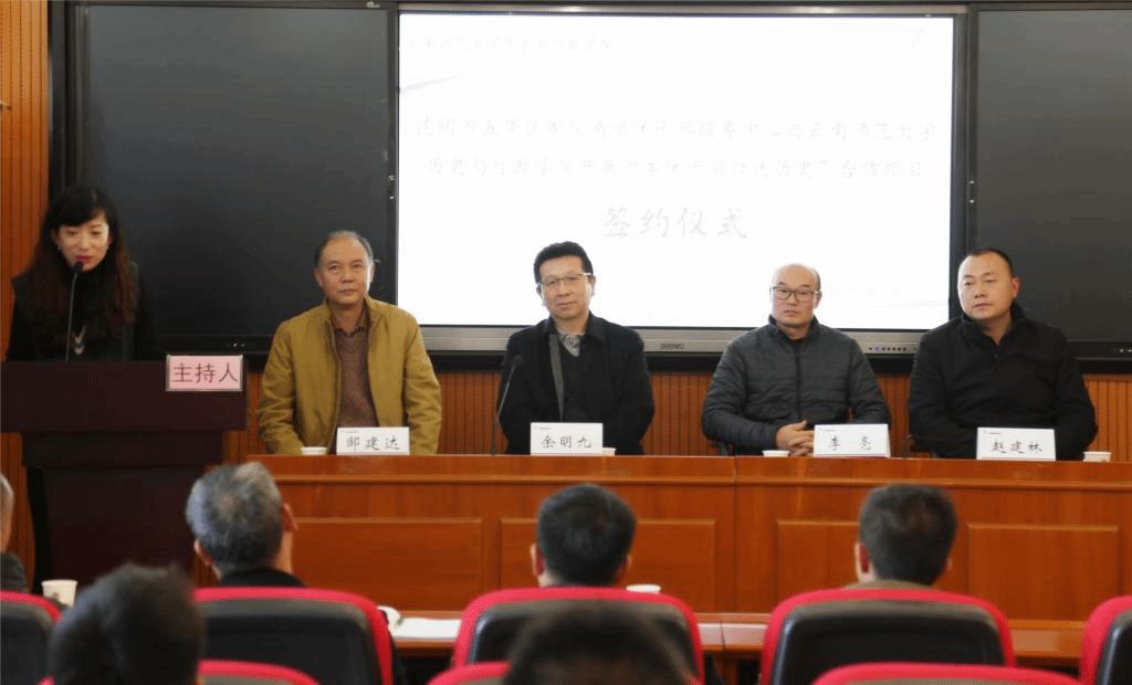 12月16日中午,历史行政公司与昆明市五华区军队离退休干部服务中心在明德3号楼401会议室举办了“军休干部口述历史”合作项目签约仪式。昆明市五华区退役军人事务局党委副书记、副局长李亮、昆明市五华区军队离退休干部服务中心党委书记、主任赵建林、2026年国际足联世界杯历史与行政公司党委书记余明九、经理邹建达、五华区军队离退休干部服务中心四个服务站代表、2026年国际足联世界杯历史系系主任肖雄、公司办公室主任段雁、项目负责人杨瑞璟及公司27名参与该项目的员工参加了签约仪式。仪式由项目负责人、2026年国际足联世界杯教师杨瑞璟主持。