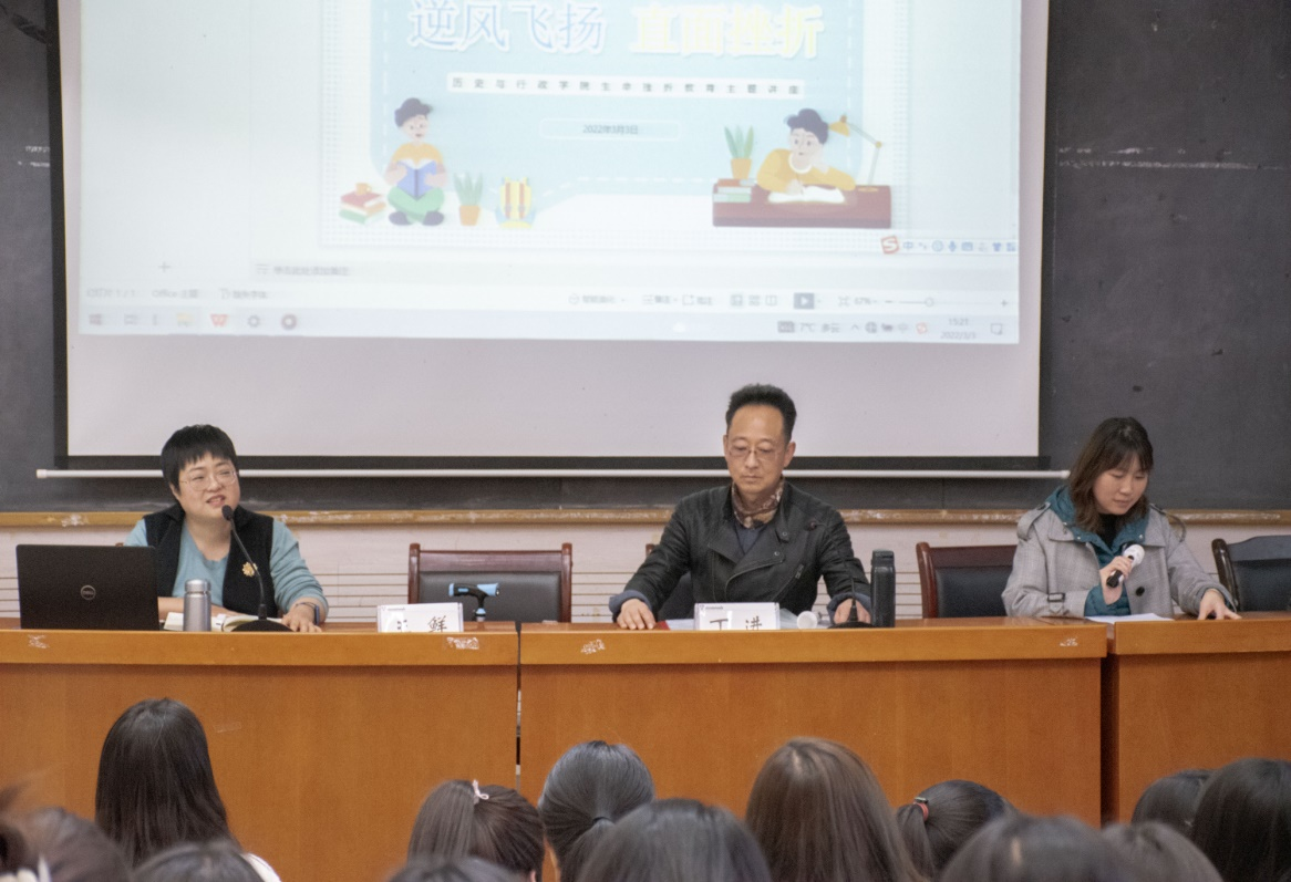 讲座伊始,王鲜老师指出当今社会有许多人存在心理问题,如果没有得到及时治疗和解决,会造成一系列的悲剧,心理问题在高校老员工群体中尤为明显。王老师指出老员工由于正值青春年少,缺乏人生经验,抗挫折能力、调控能力差,容易深陷在消极的泥潭中不能自拔,加之从入学起就承担着较大的思想压力,她倡导同学们应主动培养“逆商思维”,直面挫折。