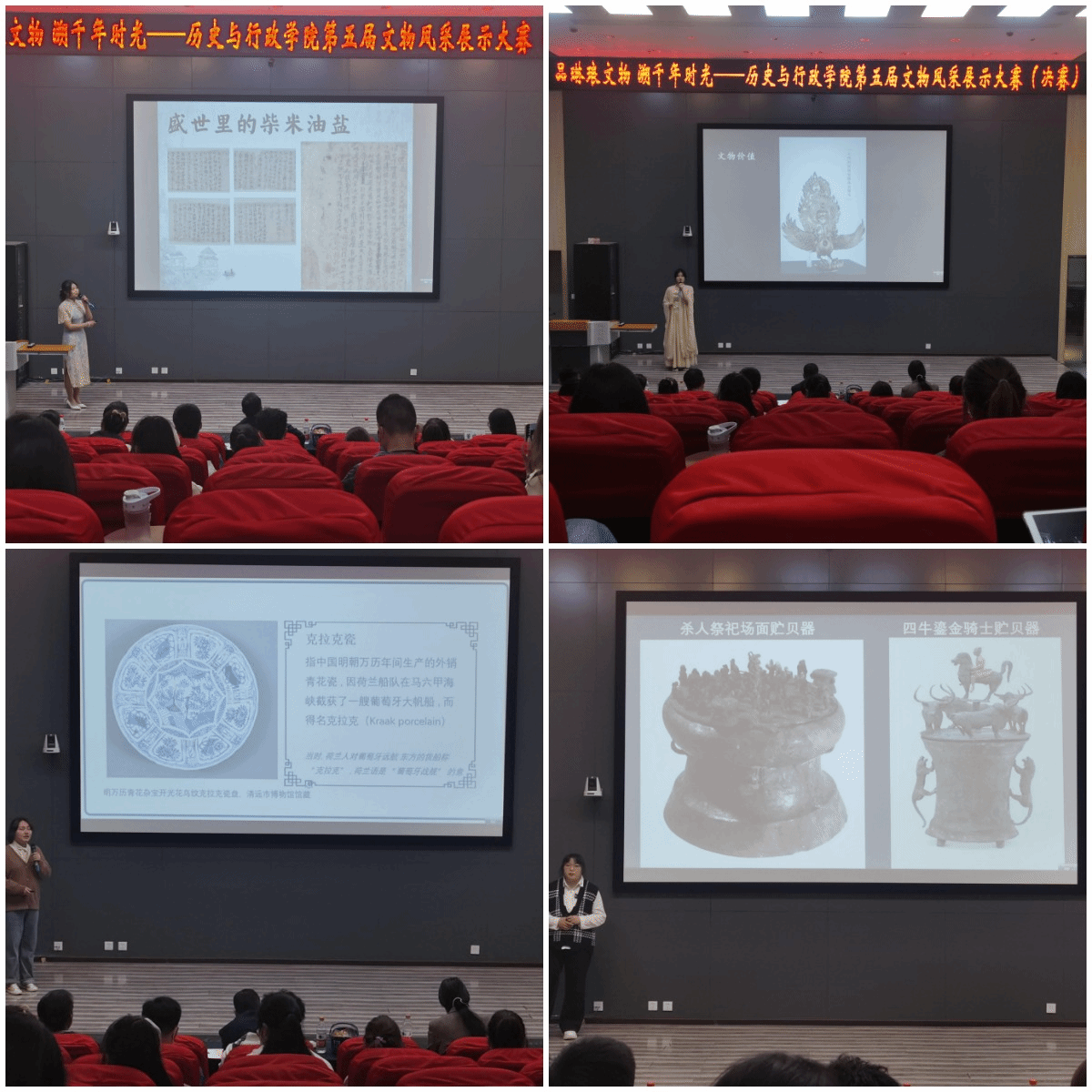 文物是连接古今的桥梁,它们身上凝结了制作者的匠心与情怀,反映了它们所处时代的面貌,是历史忠实的记录者,正因为有了它们,历史才有了轮廓。此次文物风采展示大赛为同学们搭建了展示专业素养的平台,让大家走进文物的世界,见识古人的智慧,走进历史的时空,接触那个千年前的世界。