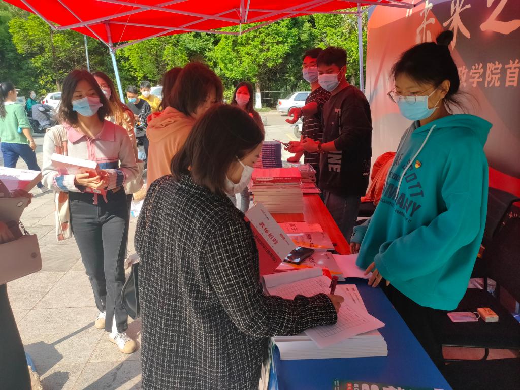 阳春三月,本是就业的黄金期、关键期,新冠疫情再次蔓延,给就业工作带来了新的挑战。本次筑梦公益活动切实满足了师生对考试、阅读的需要,赠送书籍涵盖了求职考试、学业考试、职业技能考试的内容,有考研资料、大学英语四六级、公务员考试、事业单位考试、教师招聘考试等辅导资料......赠书活动现场工作人员还对同学们提出的问题给予了耐心解答。对于此次活动,同学们纷纷点赞:“公益赠书活动意义非凡,这些书籍太实用了!”“送知识又送温暖,身处于求职期的自己也有了更明确的目标与方向”。