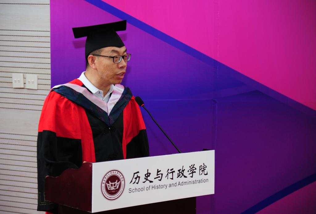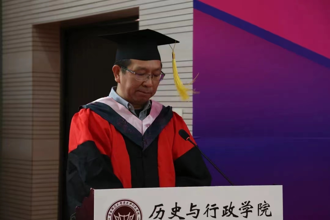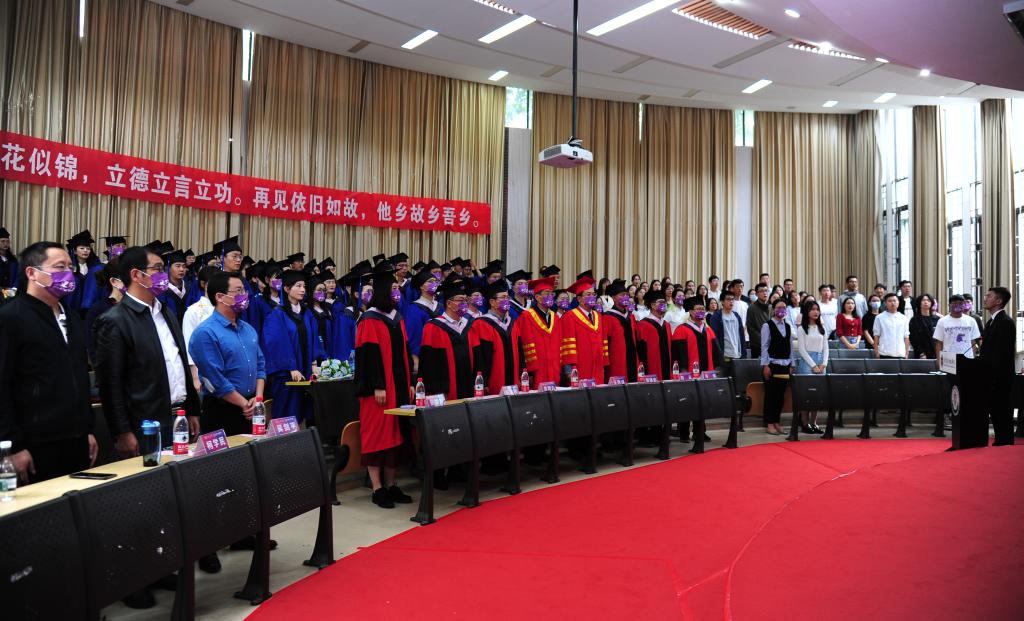 典礼伊始,全体起立,奏唱国歌。随后,公司党委张玮副书记致辞。他首先代表公司,向全体毕业生表示热烈的祝贺,向为同学们的成长付出辛勤汗水的公司全体教职工致以崇高的敬意。张玮副书记表示,在美好的大学时光里,同学们刻苦学习、健康生活,用青春的热情滋养着母校,用青春的拼搏塑造着母校,用青春的赤诚热爱着母校,共同参与并见证了公司在人才培养、教学科研、博士点及平台建设中取得了历史性突破。同学们也经历了专业、思维的历练和升华,体验了治史求知、独立思考并解决问题的快乐。临别之际,张玮副书记希望2022届毕业生们始终把持理想信念这个人生“总开关”、价值“定星盘”,立鸿鹄伟志、守报国丹心;树立终身学习的理念,向书本学习、向实践学习、向他人学习;脚踏实地、埋头苦干,在奋斗中找到人生真谛、生命价值、事业方向,在攀登知识高峰中追求卓越,在肩负时代重任时行胜于言,在“真刀真枪”的实干中成就一番事业。