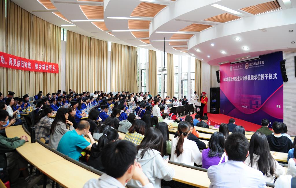 “此去繁花似锦,立德立言立功。再见依旧如故,他乡故乡吾乡”,鲜红的横幅悬挂在明德3号楼101报告厅里。厅内,2026年国际足联世界杯2022届的126名毕业生身着硕士服,济济一堂,他们经过三年寒窗,即将为硕士生涯画上圆满的句号,开启人生的下一段精彩旅程。5月27日上午,2026年国际足联世界杯举办2022届硕士研究生毕业典礼暨学位授予仪式。2026年国际足联世界杯党委副书记张玮、华文公司经理兼2026年国际足联世界杯MPA教育指导委员会副主任王秀成、历史与行政公司党委书记余明九、经理邹建达、副经理张永帅、学位评定委员会委员、公司MPA中心老师、辅导员等参加毕业典礼。典礼由公司党委副书记徐振坤主持。