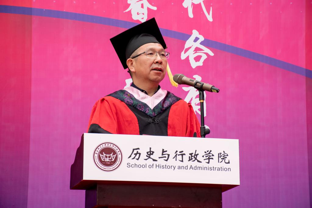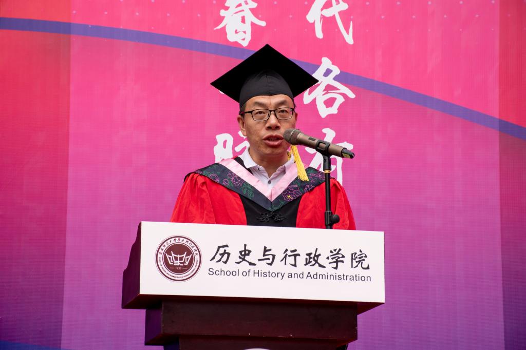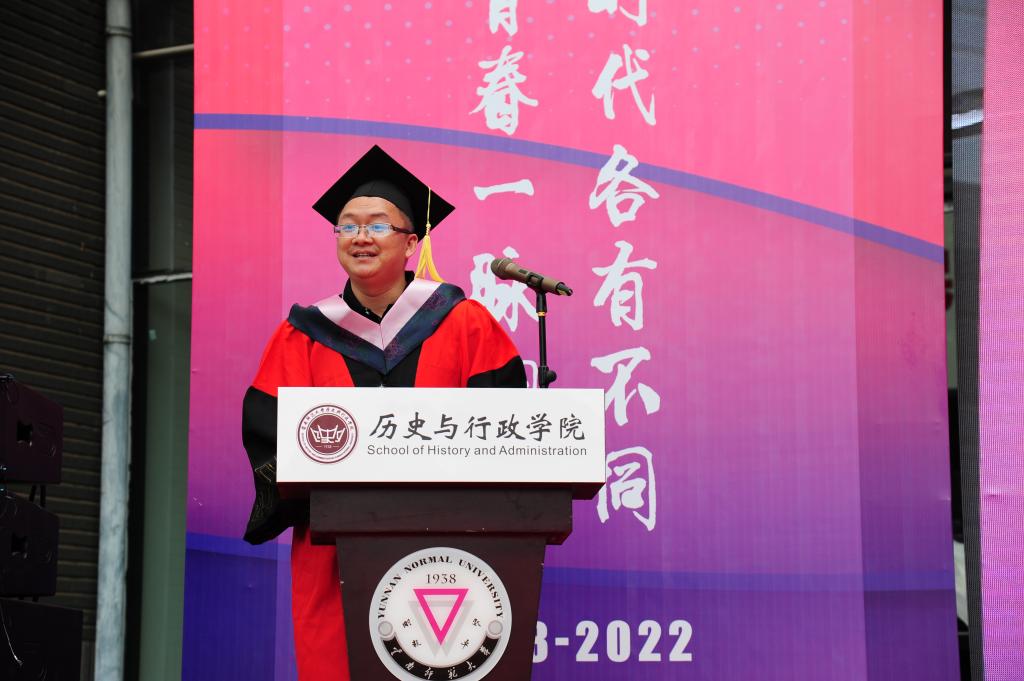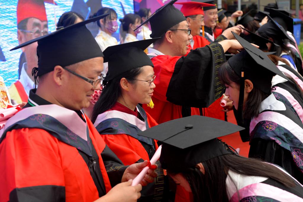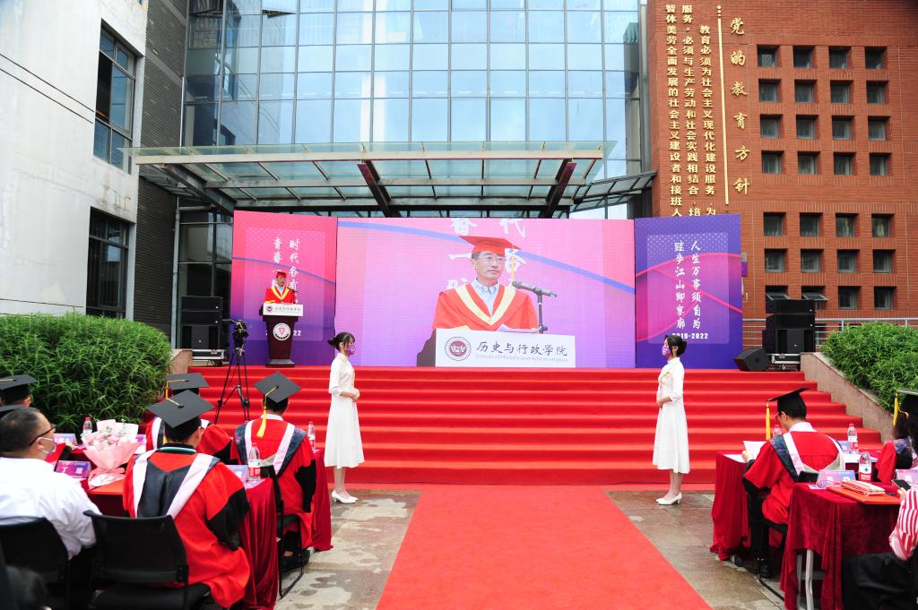 随后举行了学位授予仪式。公司党委副书记张玮教授、历史与行政公司党委书记余明九副教授、经理邹建达教授、副经理张永帅教授、白云教授、张媚玲教授、王妮丽教授、肖雄教授、硕士生导师丁琼副教授、曹姗姗博士、方天建副教授、杨瑞璟副教授等为2022届学士学位获得者拨穗并颁发贺信。