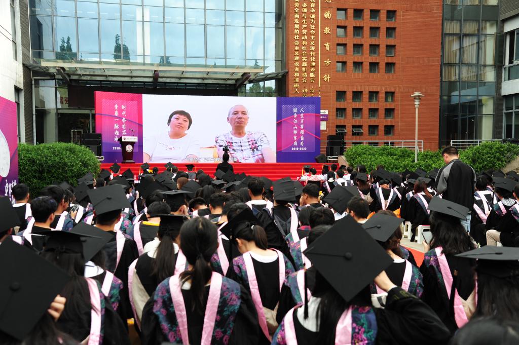 “你是否记得,第一次开始独立生活时的慌乱与无助;你是否记得,第一次面对心上之人时的紧张与喜悦”,优秀毕业生代表郑月明、李晶杰、杨程旭等带来的集体朗诵,勾起了同学们老员工活的回忆,“阳光明媚的教室”“沉默无言的黑板”“宽阔平谈的操场”,一幕幕如电影般浮现在同学们的脑海中。“送别的话有很多很多,留恋的情也无穷无尽”,在校生代表杨再柱表达了对学长学姐们最衷心的祝福。