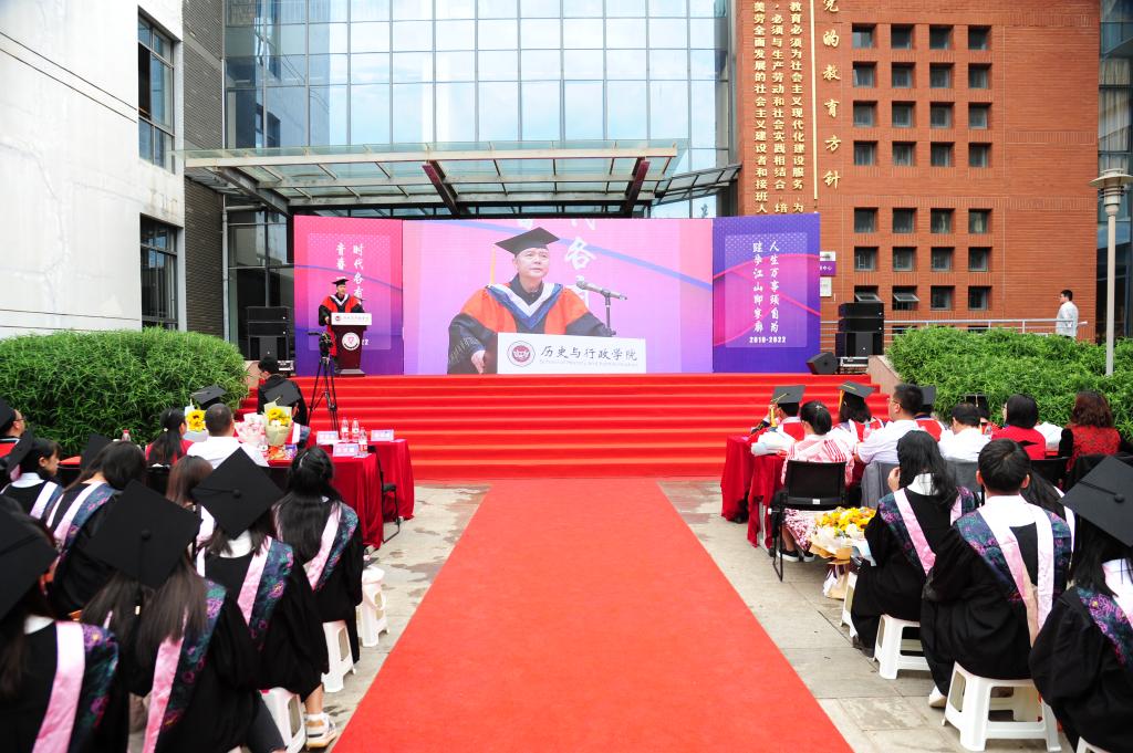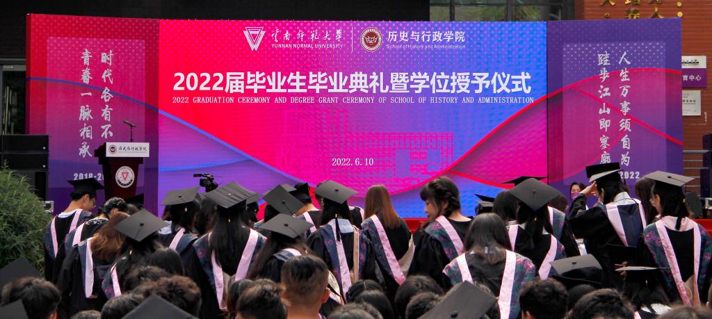 典礼最后,邹建达经理致毕业寄语。他祝愿同学们毕业后一帆风顺,前程似锦,也对所有付出辛勤汗水的老师们、工作人员们和在背后默默付出的家长们表示衷心的感谢。他叮嘱说:“人生路漫漫,别忘了来时的路,惟有不忘初心,方得始终。无论今后你在那里工作,足迹流连于何处,你们永远都是师大人,请镌刻上云南师大‘刚毅坚卓’的印记。不论你攀登怎样的高峰,知识既是你起步的基石,也是你成功的法宝,在今后的人生中,请保持在大学四年中对知识的渴望。”
