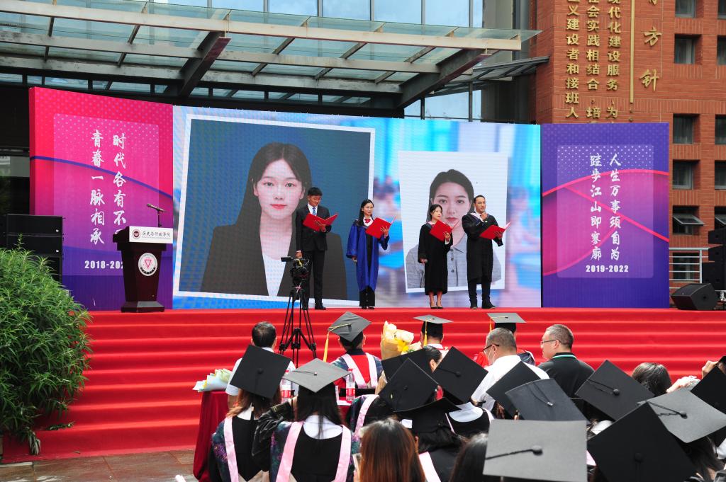 接着,余明九书记宣读了2022届省级、校级优秀毕业生的表彰决定。郝缘君、杨雨蒙、袁晓云等16名毕业生荣获“省级优秀毕业生”称号;王道顶、郝缘君、张亚皎等32名毕业生荣获“校级优秀毕业生”称号。参加典礼的各位领导为获奖员工代表颁发了荣誉证书。