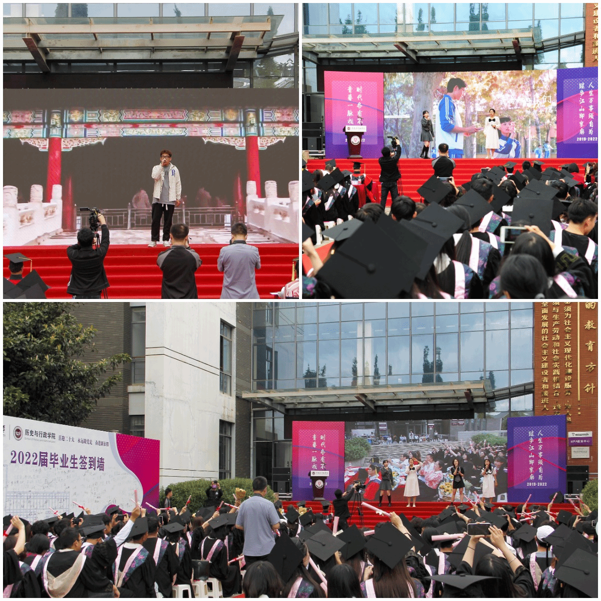 惊喜过后,李毓、金玉、何佳、世翱蔓、王羿涵等同学送上了《春风十里》、《匆匆那年》、《你曾是少年》等歌曲联唱,将典礼的气氛推上了高潮。