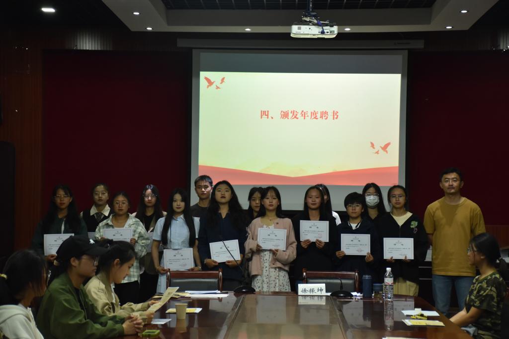 会上,徐振坤为新闻中心2022-2023学年的先进工作者、优秀干事、优秀干部颁发荣誉证书,并为新闻中心干部、干事颁发年度聘书。阮柔宣读了新一届负责人名单。