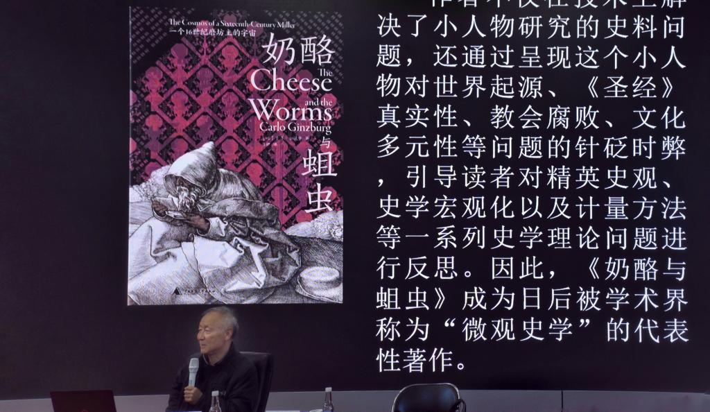 在讲座中,李伯重教授以其深厚的学术功底和独特的学术视角,为听众带来了一场关于历史的知识盛宴。谈及微观史兴起时,他引用海登·怀特等学者观点,指出微观史打破传统宏大叙事,聚焦普通人生活,展现历史另一面,丰富了历史学内涵。他借《奶酪与蛆虫》等书籍讲述微观史知识与精英史观局限性,表明历史也是普通人的写照,应从新视角审视历史。